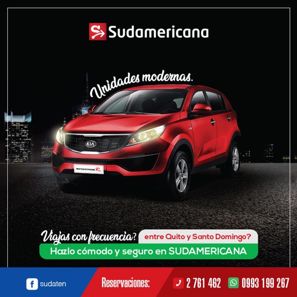 Sudamericana es una empresa ecuatoriana, que nació en la ciudad de Quito, con 25 años de experiencia ya en el mercado, basada en la necesidad de brindar un servicio de movilización de puerta a puerta para nuestros clientes y amigos, cubriendo la ruta entre las ciudades de Santo Domingo de los Tsáchilas y Quito, optimizando día a día las unidades en nuestra empresa.